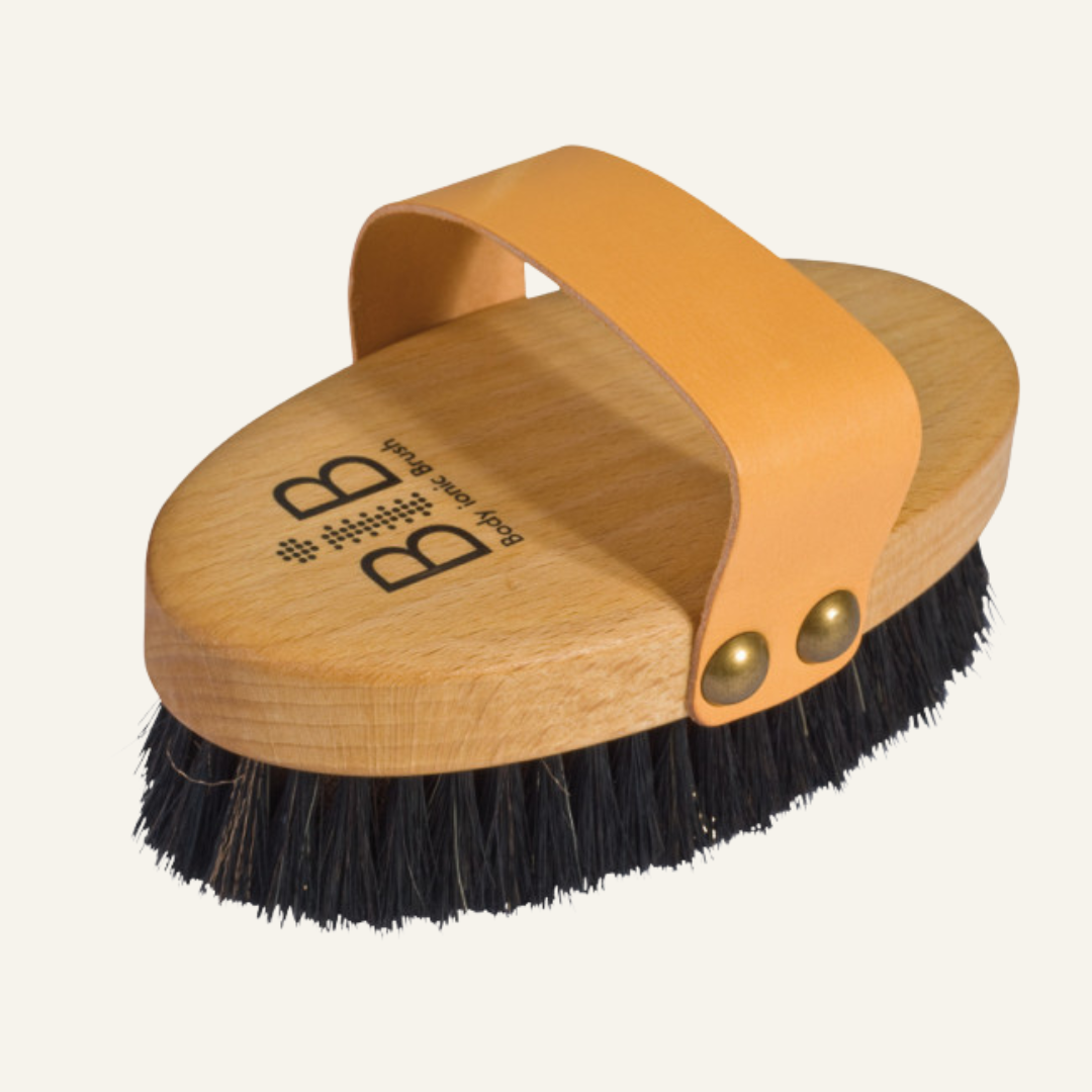 Brug en fast børste med naturlige hår og med håndtag, som giver mulighed for at nå hele ryggen forholdsvis let, og som gør det nemt at børste under fødderne og bag på benene. Der findes mange forskellige børster, bare sørg for at vælge en med naturhår.