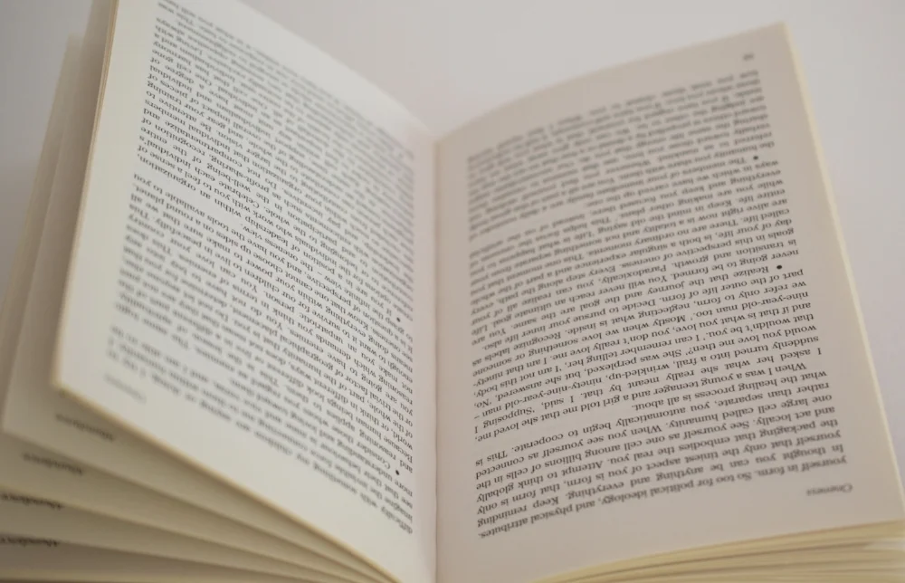 Vend en bog 180 grader og hold den i en afstand, så teksten er lidt sløret.