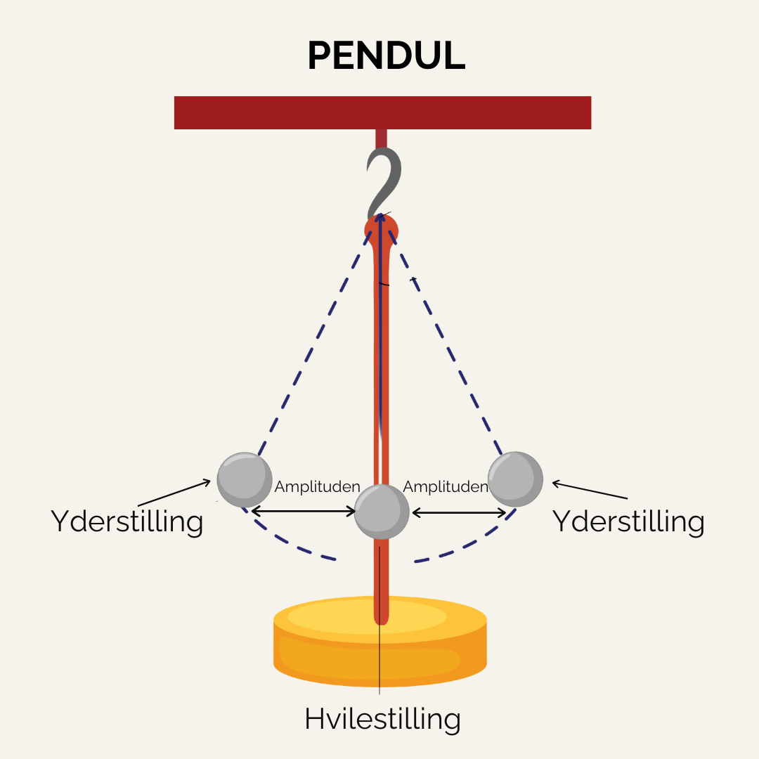 Hvis man ikke påvirker pendulet og bare lader det være, vil bredden på dets svingninger begynde at aftage eller dæmpe sig, MEN selvom bredden på svingningerne (amplituden) bliver mindre og mindre efterhånden, så er frekvensen konstant.